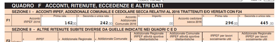 Si l'avevo notato, ma pensavo fosse il risultato della bozza di dichiarazione integrativa e non il Mod. inviati a luglio.Se noti nel rigo 161 del Mod. 730 appare valorizzato solo il campo "SECONDO O UNICO ACCONTO, mentre il campo "SALDO E PRIMO ACCONTO" non lo è.
